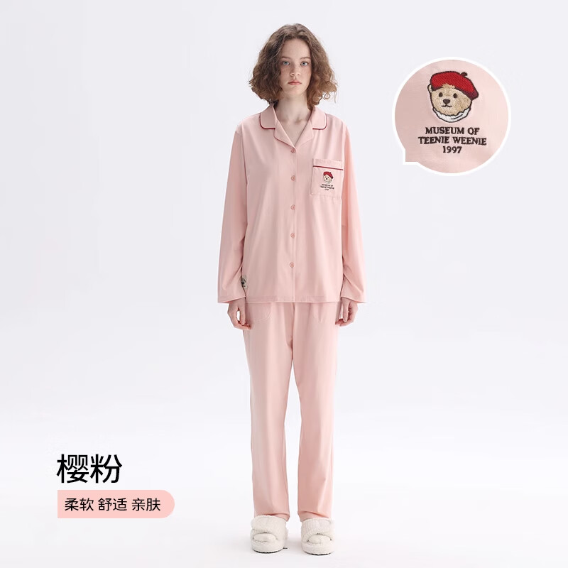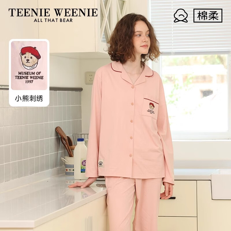 TEENIE WEENIE小熊棉睡衣女款春秋2024年新款情侣长袖家居服套装 【长袖长裤】女款开襟-樱粉 S