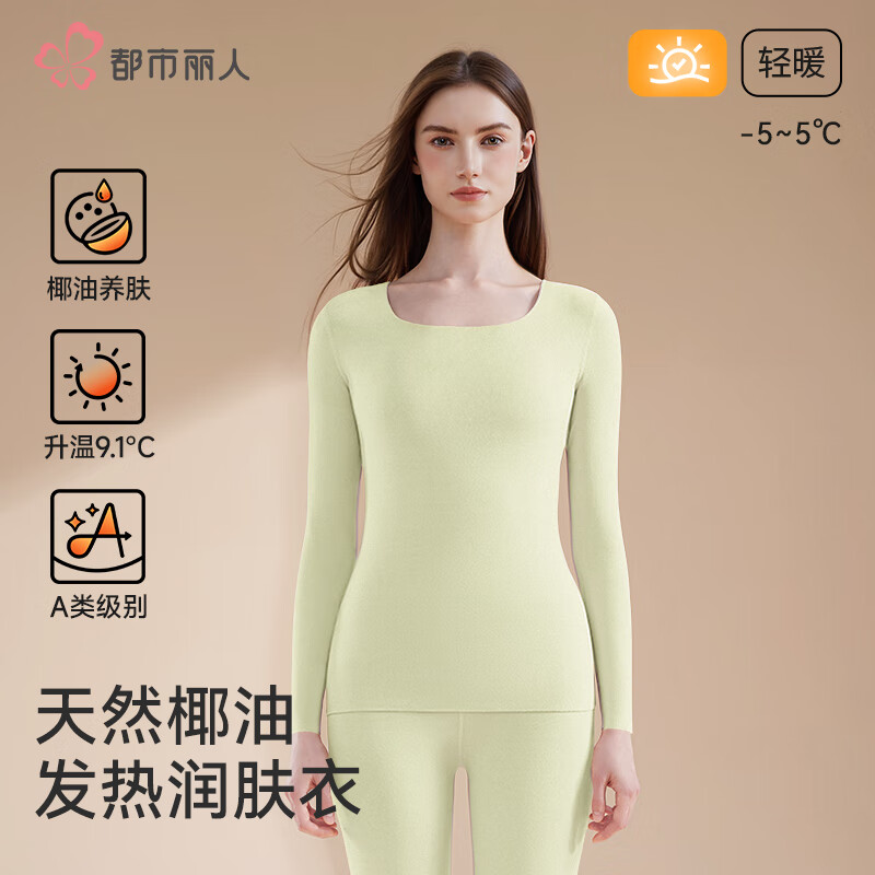 都市丽人保暖内衣女士25年新款女无痕内搭秋冬季防寒发热秋衣秋裤套装 新艾绿 【椰油润肤 升温9.1℃】 L 【参考体重100-115斤】