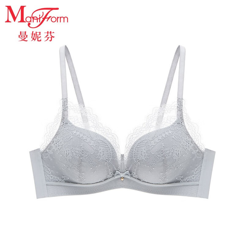 曼妮芬性感蕾丝内衣舒适无钢圈小胸聚拢文胸女士胸罩 030 灰色 75B