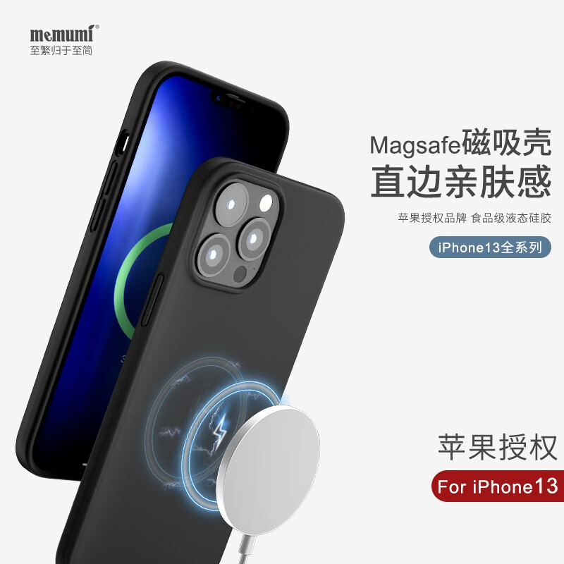 麦麦米适用苹果13promax手机壳液态硅胶MagSafe磁吸iphone13防摔壳 iPhone 13 Pro Max【带磁吸】黑色
