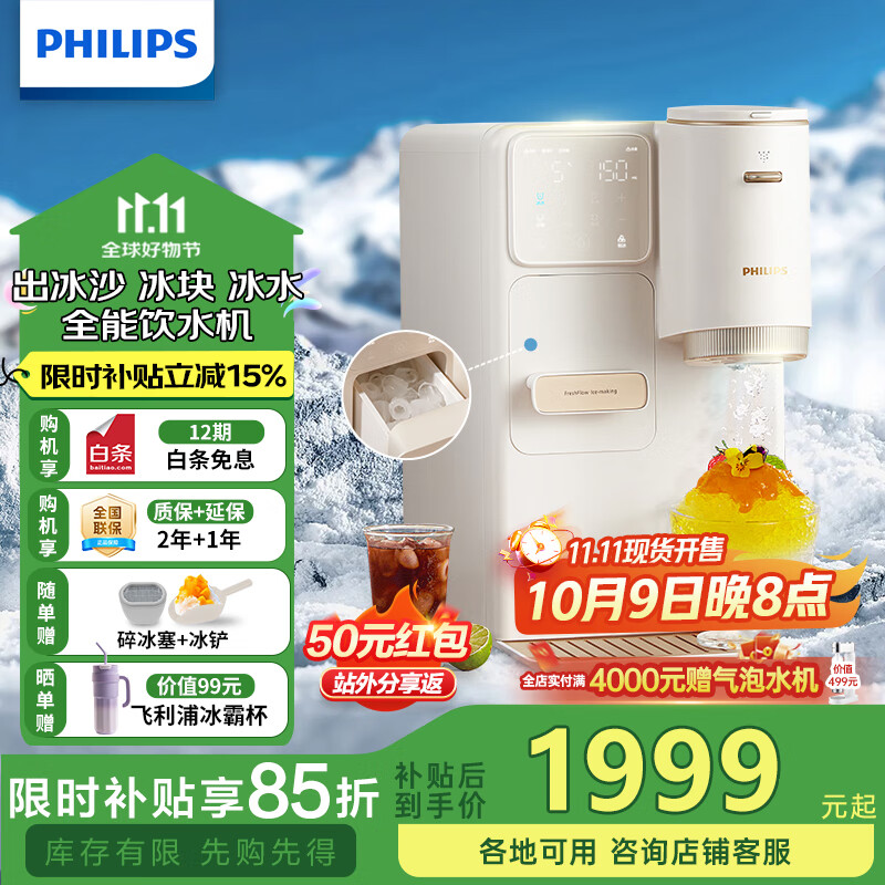 飞利浦(PHILIPS)制冰制冷即热式饮水机 制冰机刨冰直出冰沙冰块 免安装全能四合一饮水机冰境C1 七夕节礼物 即热制冷型 【制冰制冰沙】ADD8240/93