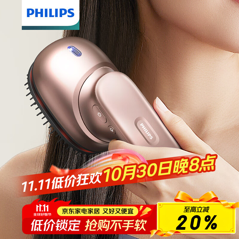 飞利浦(PHILIPS)按摩梳 升级版头皮家用按摩器 无线便携高频微震按摩 头皮护发护理柔顺可雾化精油 伴手礼物