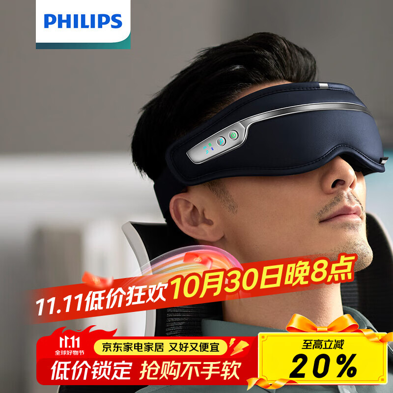 飞利浦眼部按摩仪 点振热敷多功能眼部疲劳按摩器 成人护眼仪 骨传导蓝牙音响 送父母男女朋友伴手礼物 PPM7303E(新款上市)