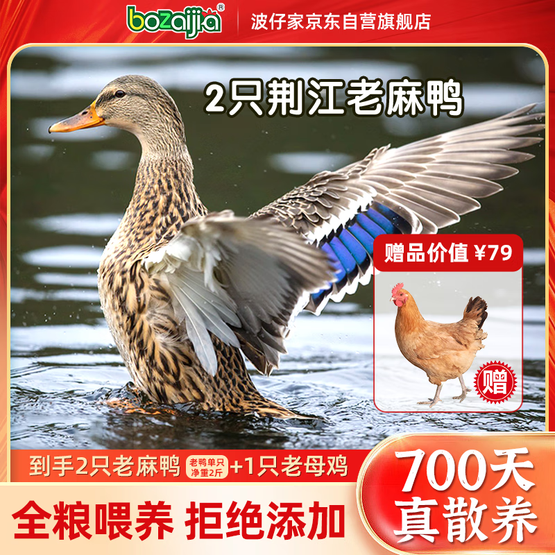 BOZAIJIA波仔家洪湖老麻鸭 2斤*2只共4斤 散养700天 新鲜现杀土鸭源头直发