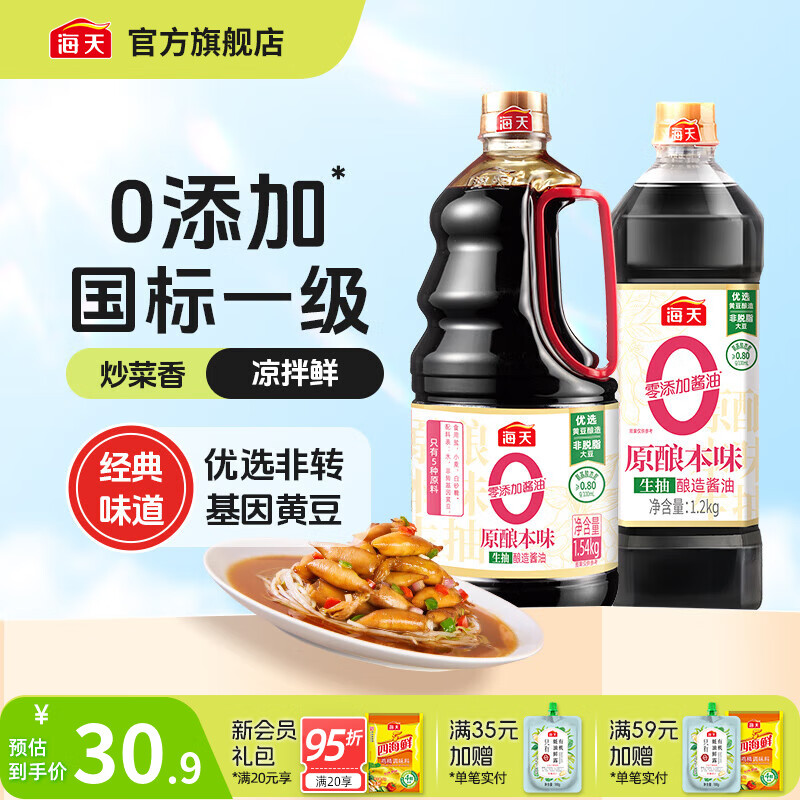 【JD旗舰店】海天 0添加生抽酿造酱油 原酿本味2.74kg(1.54kg+1.2kg)