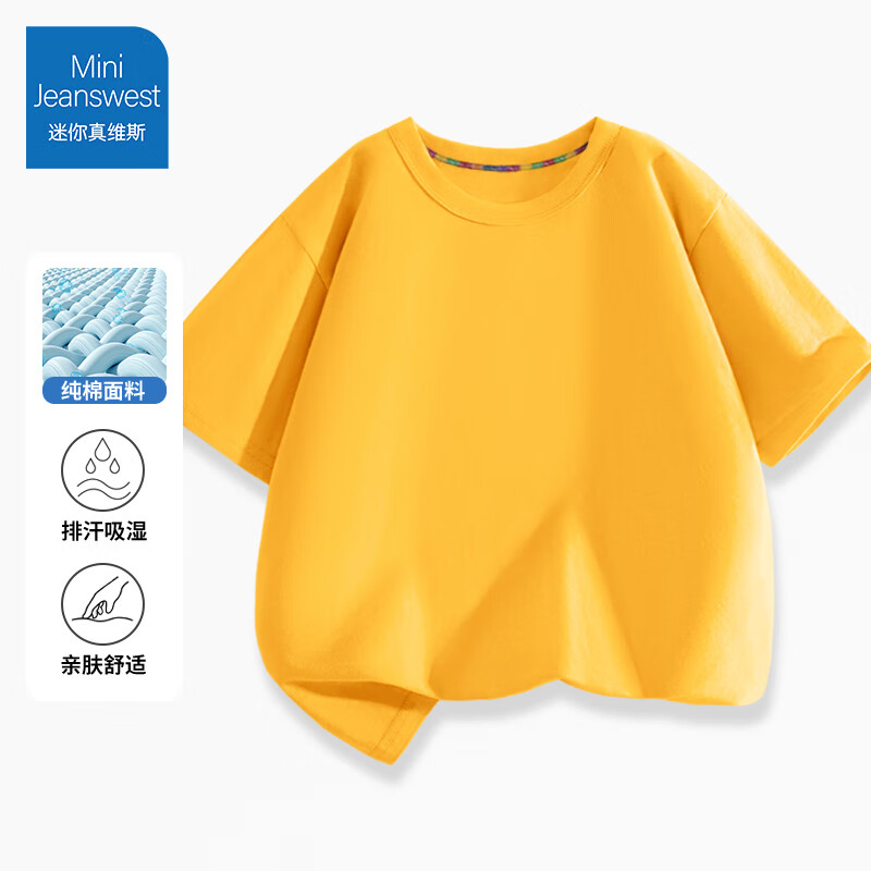 【任选3件27.7包邮】迷你真维斯 儿童纯棉纯色体恤衫 黄色
