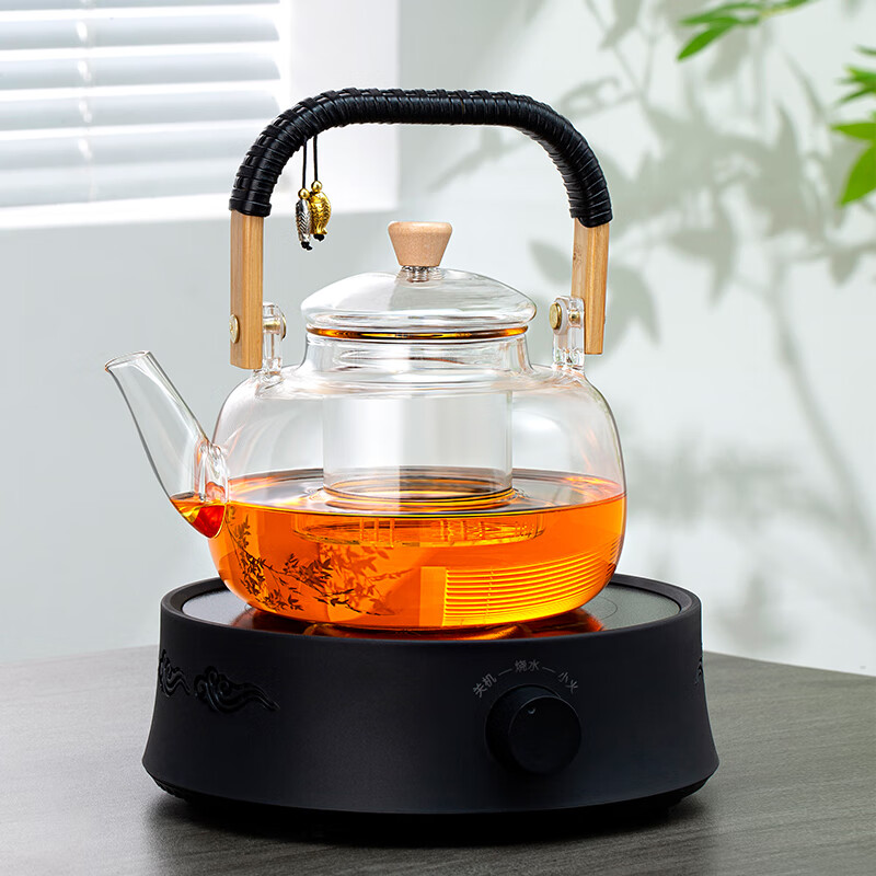 金镶玉煮茶套装 电陶炉玻璃泡茶煮茶器烧水壶家用全自动围炉煮茶 安适