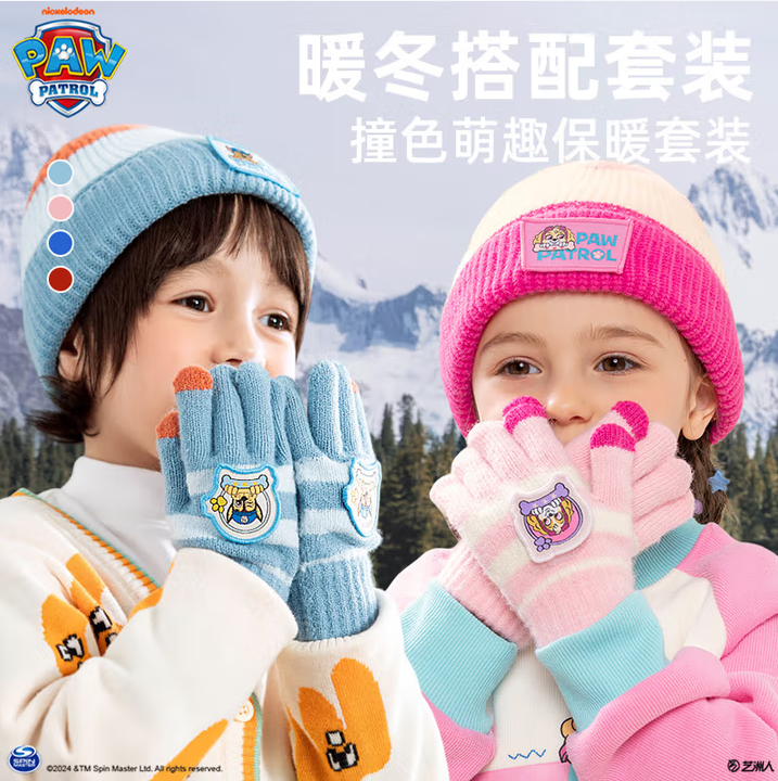 【19.9包邮】汪汪队立大功 儿童撞色保暖针织帽+手套 浅蓝(1-3岁)