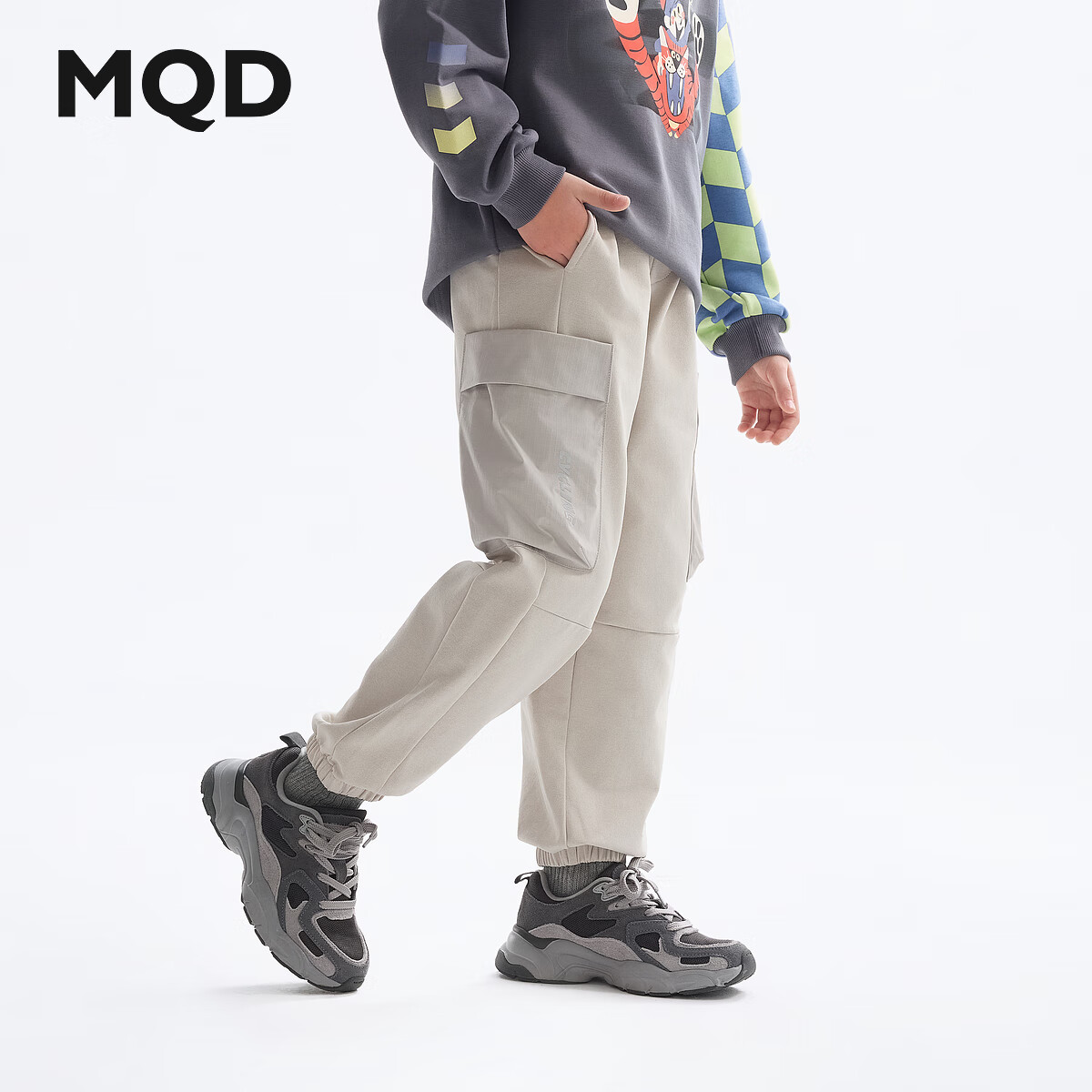 MQD男大童户外露营工装大口袋休闲裤卡其