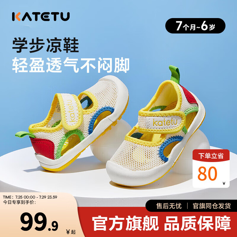 卡特兔儿童凉鞋学步鞋女童凉鞋可湿水婴儿鞋夏季6-12个月防滑软底宝宝鞋 白黄红 18 内长11.5cm-脚长10.5-11.0