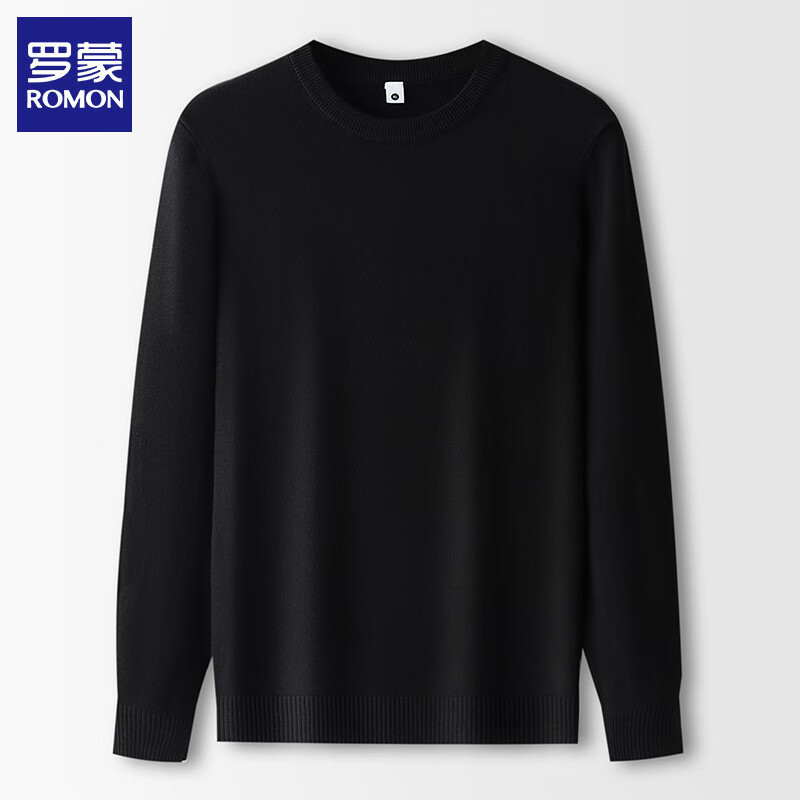 罗蒙(ROMON)男士纯色毛衣2025秋季新款简约内搭打底针织衫休闲百搭线衣男 黑色 XL