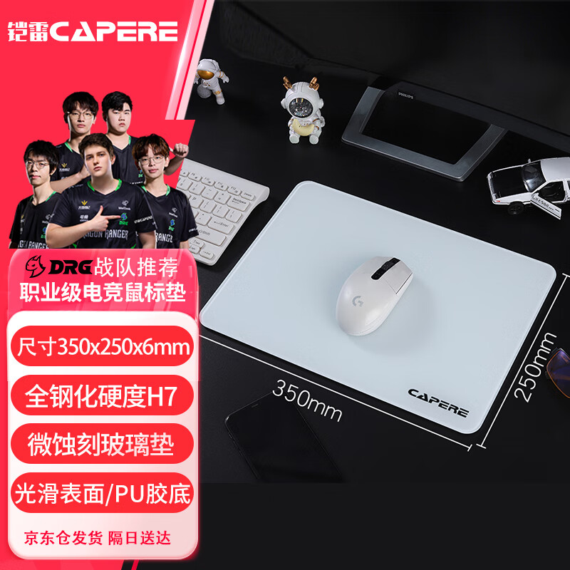 CAPERE(铠雷)防水全钢化微蚀刻玻璃游戏鼠标垫加厚中号防滑PU底电竞 玻璃垫【皓月白】小号350x250x6mm