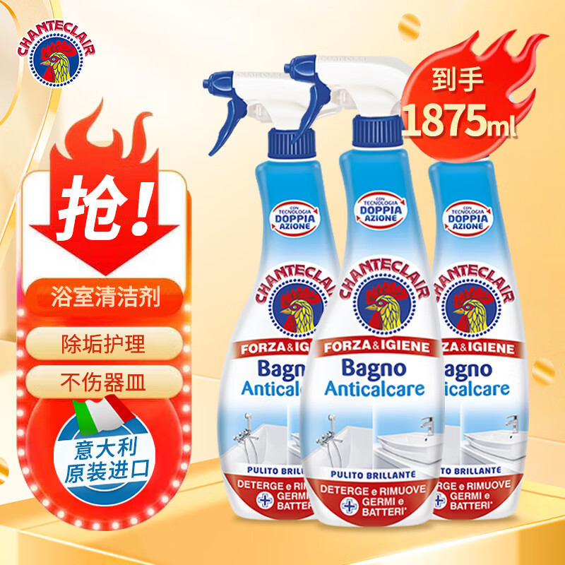 大公鸡管家(CHANTE CLAIR) 意大利进口 水垢皂垢瓷砖卫浴厕所清洁剂 浴室清洁剂 625ml*3