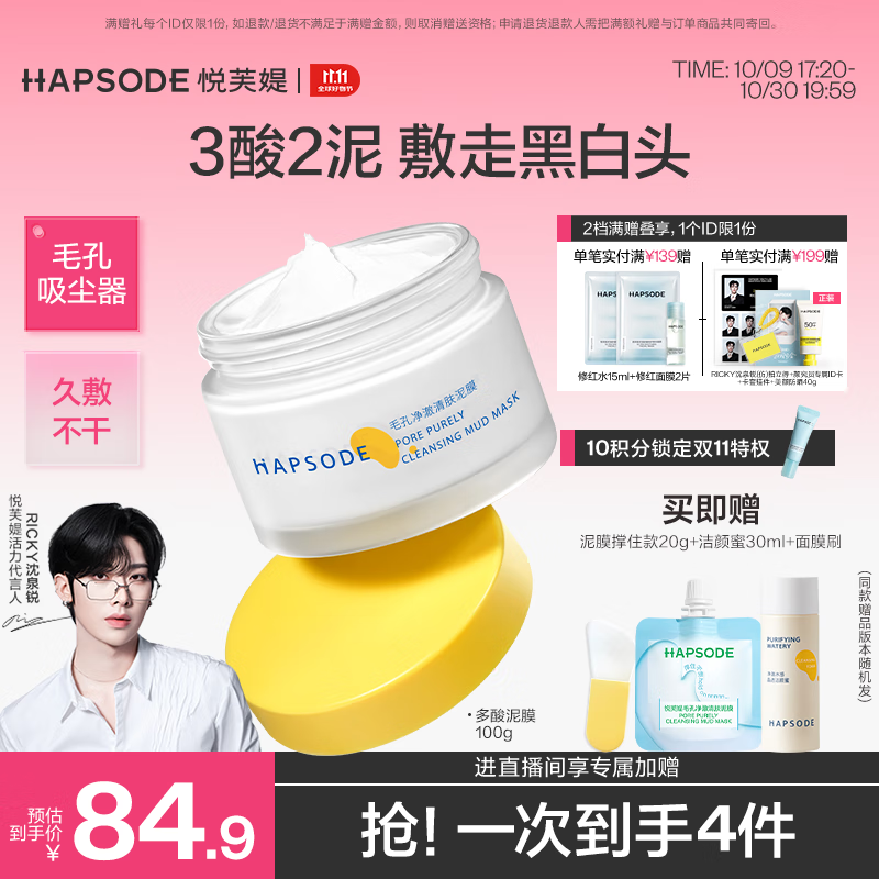 悦芙媞多酸泥膜油皮深度清洁去黑头涂抹面膜送女友 【RICKY沈泉锐同款】2.0正装100g