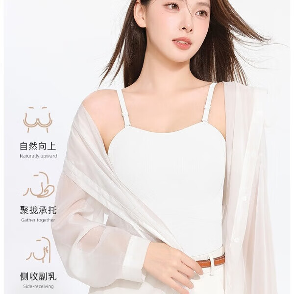 SecretWorld吊带背心女免穿文胸一体式薄款美背春夏外穿内搭上衣无袖新款辣妹 奶白+奶咖【V字美背】 M 【90-110斤/卡码拍大】